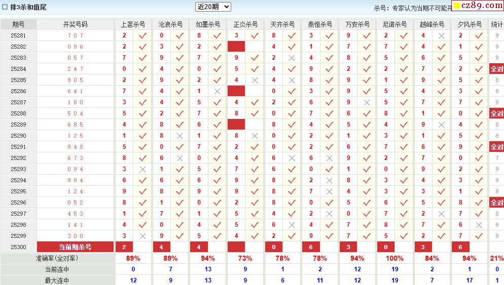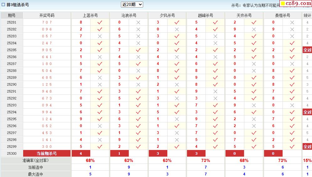 25年300期彩宝贝专家体彩P3杀号定码图表